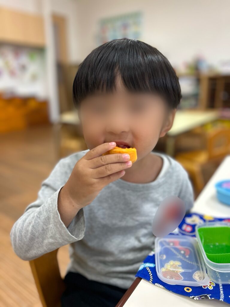 お弁当の後に大きなお口でいただきました。とてもあま~くてとても美味しかったです。