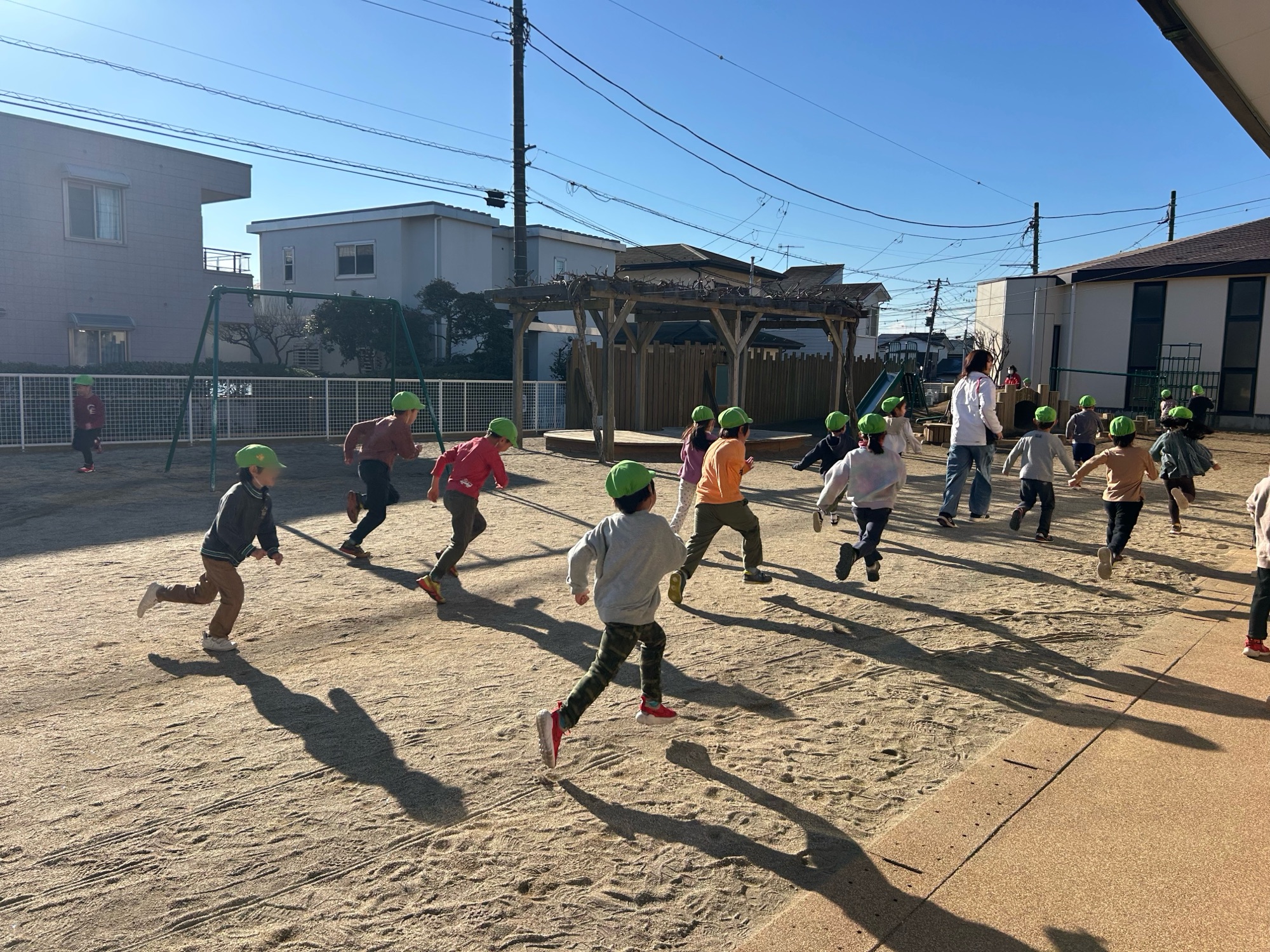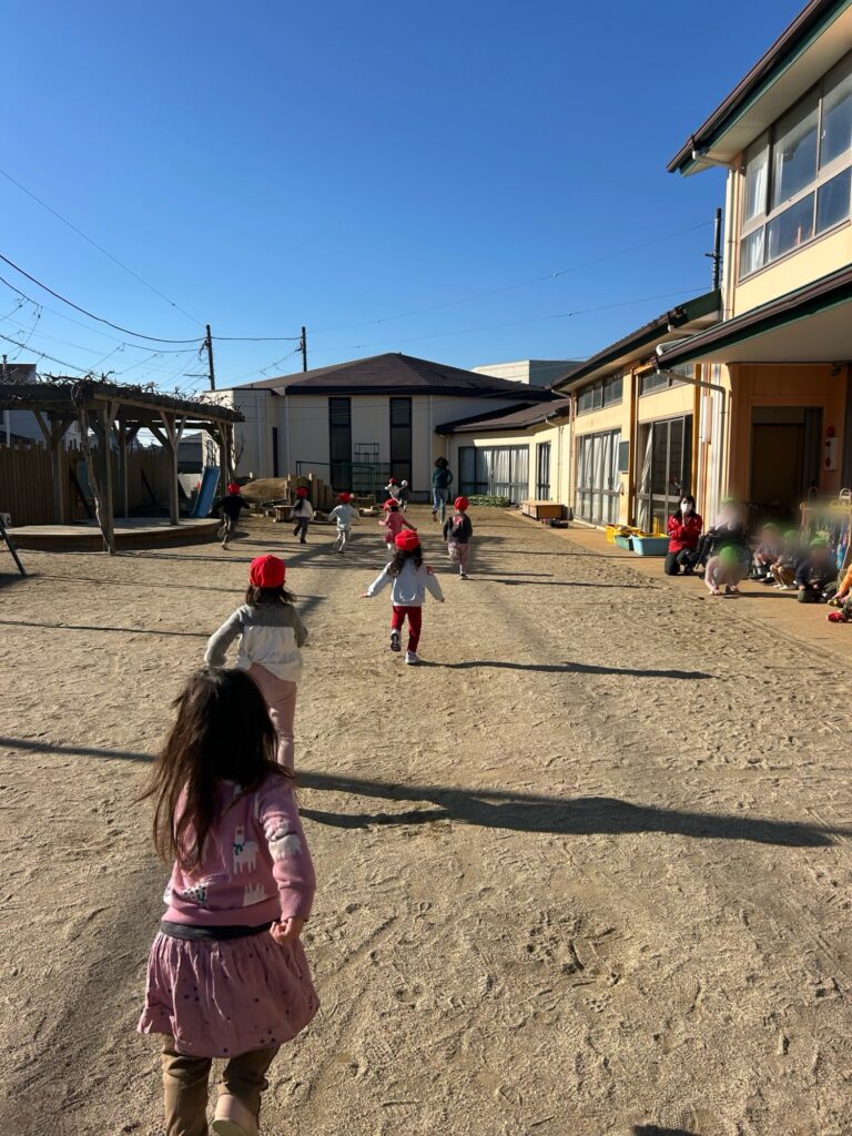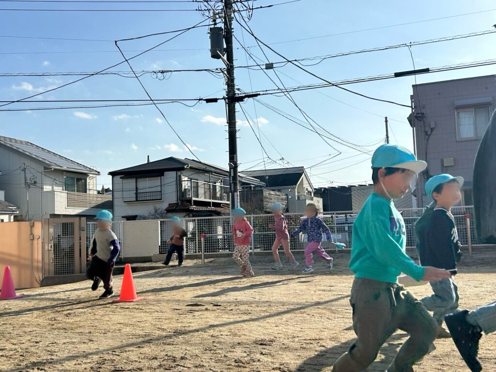 3学期は、登園後学年ごとに園庭を走り体力作りや体を動かすことをしてきました。最初は1周からはじまった園庭マラソンも大会前日には、年長7周、年中5周、年少3周以上を目標に走ろう!と子どもたちみんな、頑張っていました。自分で〇周走るぞーー!と決めて10周以上走る子も・・🥰