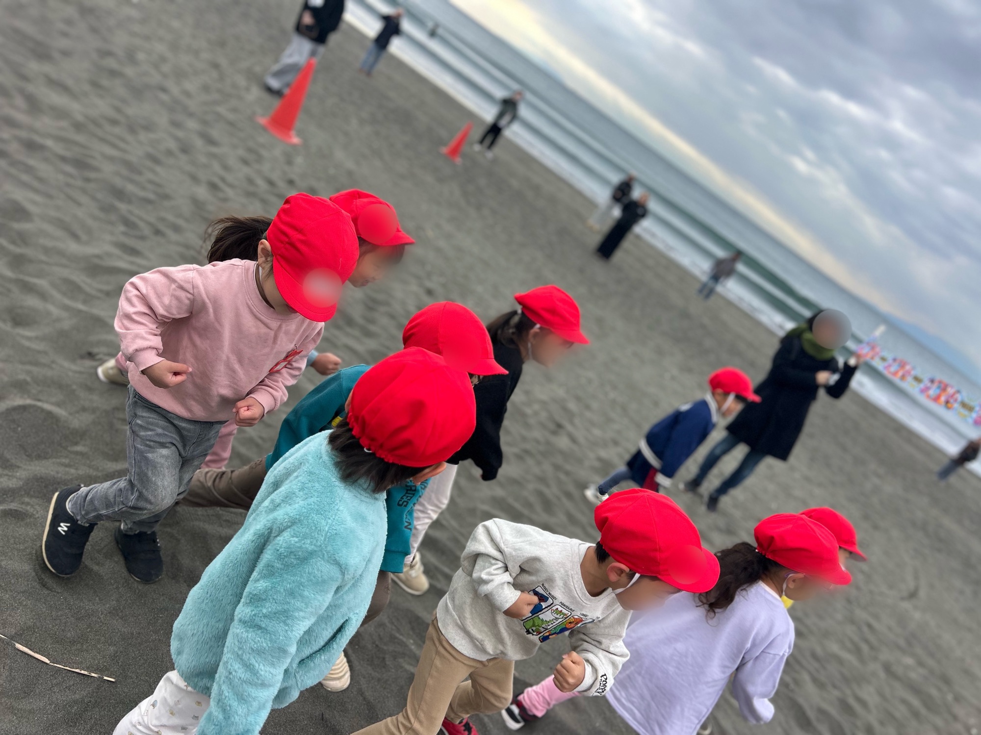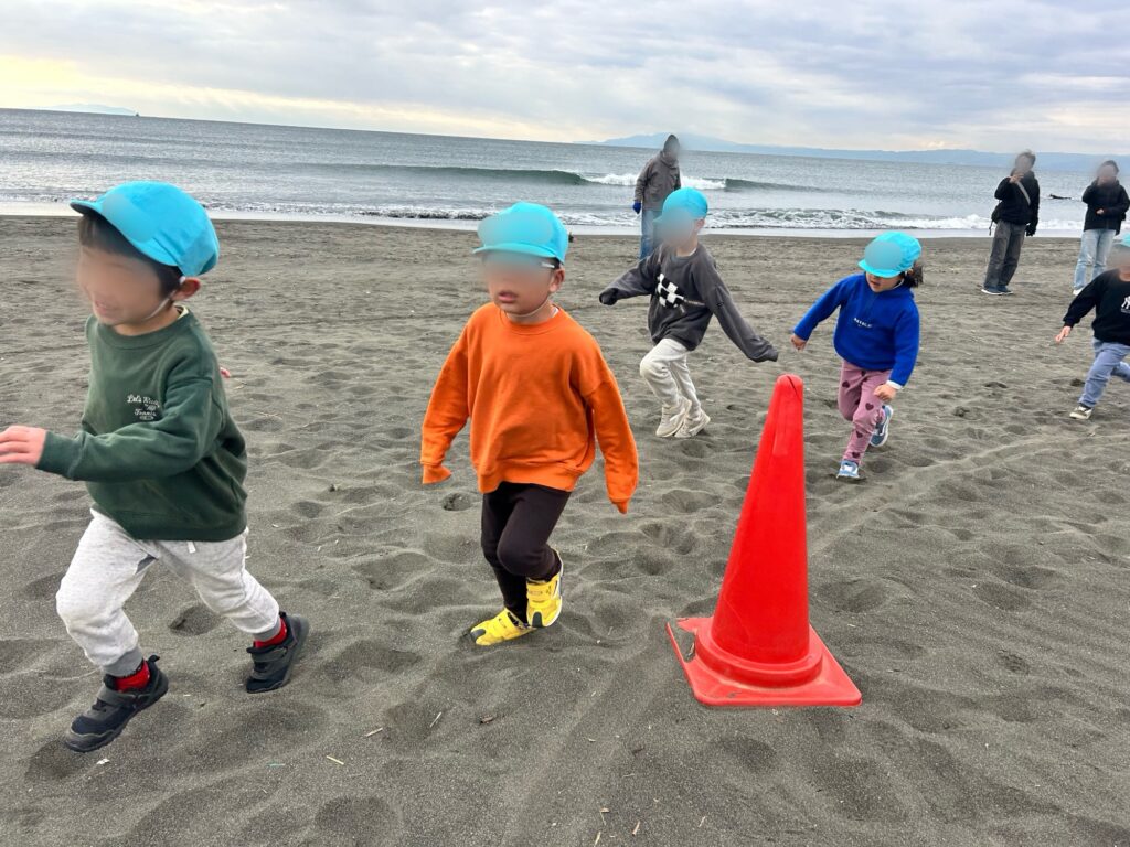 マルコ幼稚園では、海が近いこともあり海岸でマラソン大会を行っています。鵠沼海岸は、右を向けば富士山、左を向けば江ノ島が見えるとっても良い場所☆そんな海岸で気持ち良い風を浴び、波音を聞きながら走るマラソンは別格です。